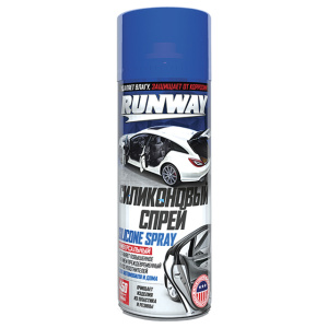 Силиконовый спрей RUNWAY предназначен для устранения трения и износа резиновых уплотнителей капота и багажника, а также очистки изделий из пластика и резины. Образует на поверхности полимерный слой с водоотталкивающим и антистатичным свойством. Предотвращает обледенение и замерзание резиновых уплотнителей, дверных замков, замка багажника и бензобака. Удаляет влагу и защищает клеммы аккумулятора и других электрических контактов от окисления и коррозии. Устраняет скрежет и шум ремней вентилятора, газораспределительного механизма и троса спидометра.