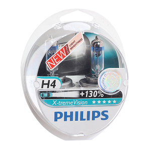 лампа H-4 12V 60/55W PHILIPS +130% X-TREME VISION PLUS (к-т 2шт) евробокс