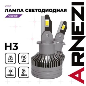 лампа светодиодная H-3 12/24V 45W 6000K 3500Lm (к-т 2шт) ARNEZI