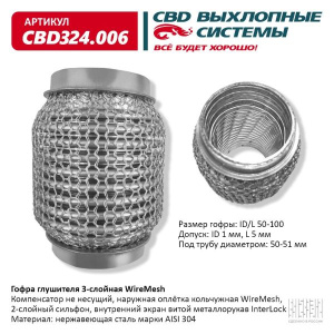 Описание конструкции: Компенсатор не несущий, наружная оплётка кольчужная WireMesh, 2-слойный сильфон, внутренний экран витой металлорукав InterLock