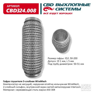 Описание конструкции: Компенсатор не несущий, наружная оплётка кольчужная WireMesh, 2-слойный сильфон, внутренний экран витой металлорукав InterLock