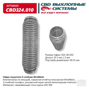 Описание конструкции: Компенсатор не несущий, наружная оплётка кольчужная WireMesh, 2-слойный сильфон, внутренний экран витой металлорукав InterLock