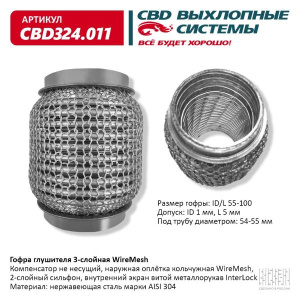 Описание конструкции: Компенсатор не несущий, наружная оплётка кольчужная WireMesh, 2-слойный сильфон, внутренний экран витой металлорукав InterLock