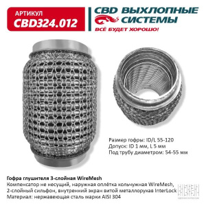 Описание конструкции: Компенсатор не несущий, наружная оплётка кольчужная WireMesh, 2-слойный сильфон, внутренний экран витой металлорукав InterLock
