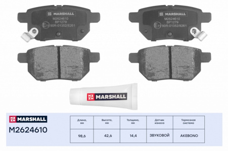 характеристики дисковых задних тормозных колодок Marshall M2624610: