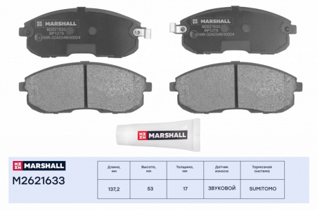 Характеристики дисковых тормозных колодок M2621633: