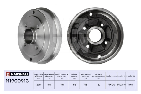 Барабан тормозной задний 6001548126 MARSHALL (208мм) Renault Logan I, Clio I, Twingo