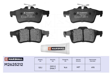 характеристики тормозных колодок MARSHALL M2625212: