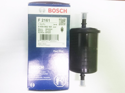 0450902161 — артикул топливного фильтра бренда Bosch. высота — 143 мм; диаметр — 55,4 мм; наружный диаметр — 61 мм; выпускной диаметр — 8 мм; впускной диаметр — 8 мм; тип — прямоточный; система впрыска — бензина