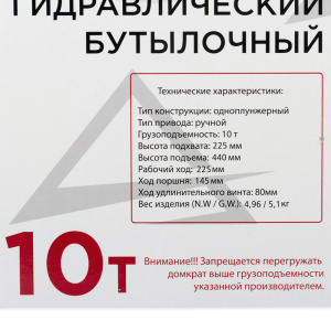 Домкрат гидравлический бутылочный 10т 225-440мм
