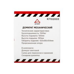 Домкрат механический винтовой ромбовидный 1.5т 104-385 мм LADA, RENAULT