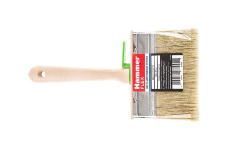 Кисть для красок на водной основе, белая натуральная эластичная щетина. деревянная неокрашеная ручка из твердых пород древесины (береза, бук, дуб) ТОПС 75% Кисть для водных красок Hammer Flex 237-004 120*25 (дерев.ручка)