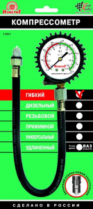 Благодаря резьбе изделие может быть закреплено в отверстии для свечи зажигания, что позволяет производить измерение компрессии без участия помошников. Гибкая конструкция компрессометра обеспечивает возможность проведения замеров компрессии без демонтажа оборудования затрудняющего доступ к свечным отверстиям и создает дополнительное удобство при пользовании прибором.