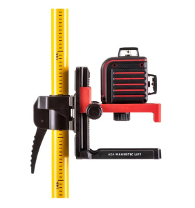 В комплекте имеется магнитное крепление с микролифтом ADA MAGNETIC LIFT. Для грубой установки лазерного прибора используется подвижный фиксатор SLIDER на штанге-штативе. Для миллиметровой точности горизонтального луча в диапазоне от 0 до 11 сантиметров используется микролифт ADA MAGNETIC LIFT.