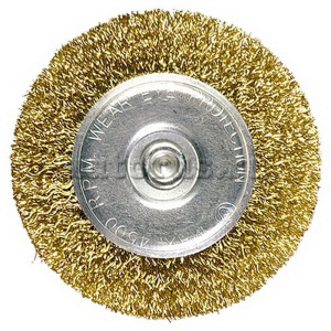 щетка для дрели плоская d40 мм металлическая плоская со шпилькой, латунированная витая проволока, мягкая MATRIX 74442