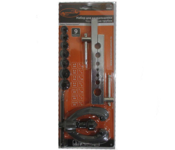 --- В состав набора входит: планка с отверстиями под шесть размеров трубок, станок для развальцовки, семь сменных пуансонов для торцовки тормозных трубок.