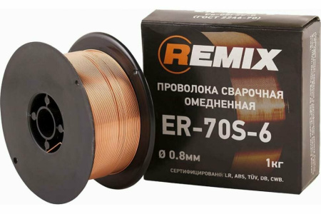 проволока сварочная омедненная 0,8мм 1кг REMIX ER-70S-6