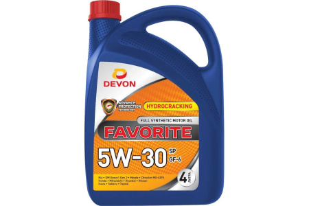 Devon Favorite SAE 5W-30 SP GF-6 – синтетическое масло на высокотехнологичном пакете присадок с модификаторами трения для турбированных бензиновых двигателей. Обладает улучшенными противоизносными свойствами и обеспечивает большую безопасность и срок службы для систем нейтрализации выхлопных газов.