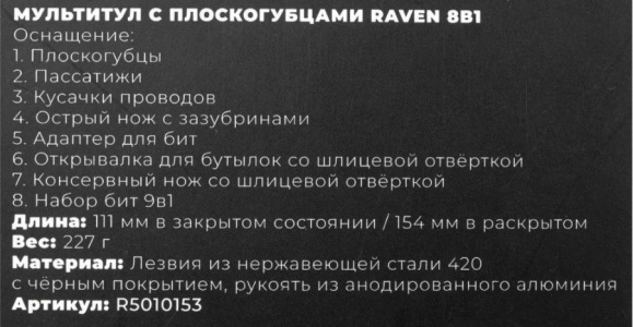 Мультитул с плоскогубцами Raven 11в1 ARNEZI R5010153.
