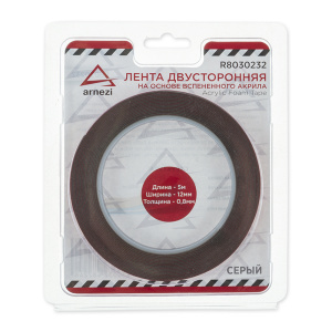 Лента липкая двусторонняя 0,8мм x 12мм x 5м акриловый, серый, в блистере